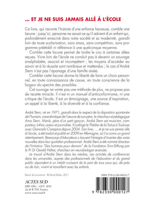 Combler cette lacune permet de tordre le cou à certaines idées reçues. Grandir loin de l'école ne conduit pas fatalement à devenir un sauvage analphabète, asocial et incompétent ; les moyens d'accéder au savoir et à la réussite sont nombreux et inattendus ; et le cas d'André Stern n'est pas l'apanage d'une famille aisée.