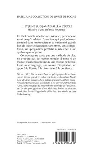 Cet ouvrage ne vante pas une méthode de plus, ne propose pas de recette miracle. Il n'est ni un manuel d'anticonformisme, ni une critique de l'école. Il est un témoignage, une source d'inspiration, un appel à la liberté, à la diversité et à la confiance.