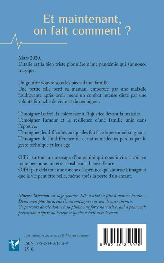 Et maintenant, on fait comment ? Mars 2020. L'Italie est la bien triste pionnière d'une pandémie qui s'annonce tragique. Un gouffre s'ouvre sous les pieds d'une famille. Une petite fille perd sa maman, emportée par une maladie foudroyante après avoir mené un combat intense dicté par une volonté farouche de vivre et de témoigner. Témoigner l'effroi, la colère face à l'injustice devant la maladie. Témoigner l'amour et la résilience d'une famille unie dans l'épreuve. Témoigner des difficultés auxquelles fait face le personnel soignant. Témoigner de l'indifférence de certains médecins perdus par le geste technique et leur ego. Offrir surtout un message d'humanité qui nous invite à voir en toute personne, un être sensible à la bienveillance. Offrir par-delà tout une touche d'espérance qui autorise à imaginer que la vie peut être belle, même après la perte d'un enfant.