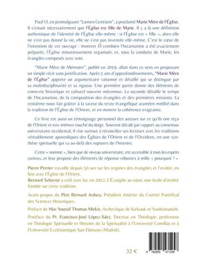 "Marie Mère de Mémoire", publié en 2019, allait dans ce sens en proposant un simple récit sans justification. Après 5 ans d'approfondissements, "Marie Mère de l'Eglise" apporte un argumentaire raisonné et détaillé qui se distingue par sa multidisciplinarité et sa rigueur. Une première partie donne des éléments de contexte historique et culturel souvent méconnus. La seconde détaille le temps de l'Incarnation, de la composition des évangiles et des premières missions. La troisième nous fait goûter à la saveur du texte évangélique araméen médité dans la tradition de l'Eglise de l'Orient, et en montre la cohérence exigeante.