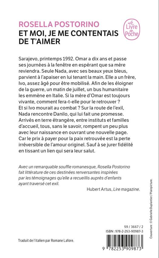 Sarajevo, printemps 1992. Omar a dix ans et passe ses journées à la fenêtre en espérant que sa mère revienne. Seule Nada, avec ses beaux yeux bleus, parvient à l’apaiser en lui tenant la main. Elle a un frère, Ivo, assez âgé pour être mobilisé. Pour les éloigner de la guerre, un matin de juillet, un bus humanitaire les emmène en Italie. Si la mère d’Omar est toujours vivante, comment fera-t-elle pour le retrouver ? Et si Ivo mourait au combat ? Sur la route de l’exil, Nada rencontre Danilo, qui lui fait une promesse. Arrivés en terre étrangère, entre instituts et familles d’accueil, chacun, sans le savoir, rompt un peu plus le lien avec sa naissance en ouvrant une nouvelle page. Car le prix à payer pour la paix retrouvée est la perte irréversible de l’amour originel. Sauf à se jurer fidélité en tissant un lien qui sera leur salut.