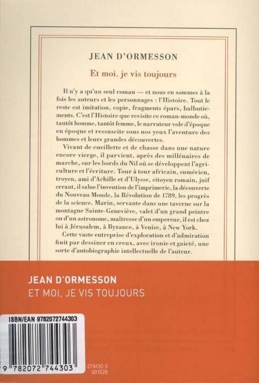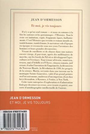 Il n'y a qu'un seul roman - et nous en sommes à la fois les auteurs et les personnages : l'Histoire. Tout le reste est imitation, copie, fragments épars, balbutiements. C'est l'Histoire que revisite ce roman-monde où, tantôt homme, tantôt femme, le narrateur vole d'époque en époque et ressuscite sous nos yeux l'aventure des hommes et leurs grandes découvertes. Vivant de cueillette et de chasse dans une nature encore vierge, il parvient, après des millénaires de marche, sur les bords du Nil où se développent l'agriculture et l'écriture. Tour à tour africain, sumérien, troyen, ami d'Achille et d'Ulysse, citoyen romain, juif errant, il salue l'invention de l'imprimerie, la découverte du Nouveau Monde, la Révolution de 1789, les progrès de la science. Marin, servante dans une taverne sur la montagne Sainte-Geneviève, valet d'un grand peintre ou d'un astronome, maîtresse d'un empereur, il est chez lui à Jérusalem, à Byzance, à Venise, à New York. Cette vaste entreprise d'exploration et d'admiration finit par dessiner en creux, avec ironie et gaieté, une sorte d'autobiographie intellectuelle de l'auteur.