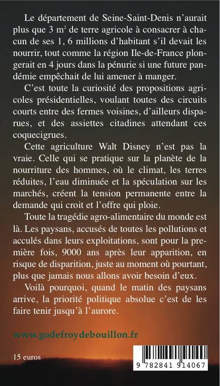 Le département de Seine-Saint-Denis n’aurait plus que 3 m2 de terre agricole à consacrer à chacun de ses 1, 6 million d’habitants s’il devait les nourrir, tout comme la région Ile-de-France plongerait en 4 jours dans la pénurie si une future pandémie empêchait de lui amener à manger. C’est toute la curiosité des propositions agricoles présidentielles, voulant toutes des circuits courts entre des fermes voisines, d’ailleurs disparues, et des assiettes citadines attendant ces coquecigrues. Cette agriculture Walt Disney n’est pas la vraie. Celle qui se pratique sur la planète de la nourriture des hommes, où le climat, les terres réduites, l’eau diminuée et la spéculation sur les marchés, créent la tension permanente entre la demande qui croit et l’offre qui ploie. Toute la tragédie agro-alimentaire du monde est là. Les paysans, accusés de toutes les pollutions et acculés dans leurs exploitations, sont pour la première fois, 9000 ans après leur apparition, en risque de disparition, juste au moment où pourtant, plus que jamais nous allons avoir besoin d’eux. Voilà pourquoi, quand le matin des paysans arrive, la priorité politique absolue c’est de les faire tenir jusqu’à l’aurore.