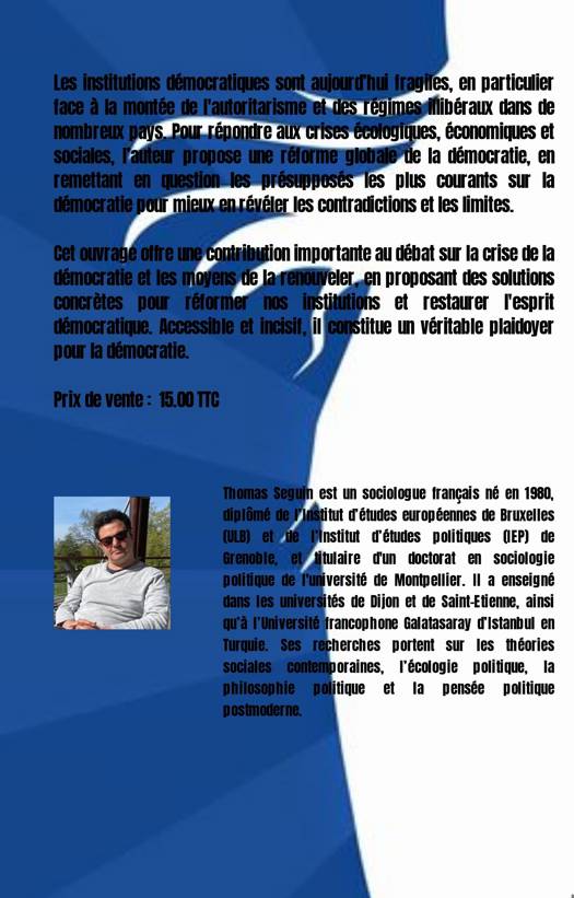 Dans un contexte politique marqué par une crise de confiance envers les institutions démocratiques, cet ouvrage offre une réflexion profonde et stimulante sur les enjeux contemporains de la fin du régime politique de la 5ème République. L’auteur examine avec acuité les mutations qui ont transformé notre paysage politique. La France a progressivement évolué, sans même en prendre conscience, vers un nouveau type de régime politique, que l'on peut assimiler à une 6ème République. Les historiens du droit comprendront probablement dans le futur comment les changements institutionnels des dernières décennies ont profondément modifié la physionomie de nos institutions. Pour inventer un nouvel avenir politique, nous devons comprendre l’ère politique dans laquelle nous vivons, et ceci afin de travailler à la création d'une 7ème République qui renouvelle notre idée de la démocratie. En replaçant les crises institutionnelles actuelles dans une perspective historique, l’auteur montre que la démocratie n'est pas une donnée immuable mais un processus en évolution, qui nécessite une vigilance constante. Il explore ainsi les menaces sur les fondements de notre démocratie tout en invitant à les combattre. Les institutions démocratiques sont aujourd’hui fragiles, en particulier face à la montée de l'autoritarisme et des régimes illibéraux dans de nombreux pays. Pour répondre aux crises écologiques, économiques et sociales, l’auteur propose une réforme globale de la démocratie, en remettant en question les présupposés les plus courants sur la démocratie pour mieux en révéler les contradictions et les limites. Cet ouvrage offre une contribution importante au débat sur la crise de la démocratie et les moyens de la renouveler, en proposant des solutions concrètes pour réformer nos institutions et restaurer l'esprit démocratique. Accessible et incisif, il constitue un véritable plaidoyer pour la démocratie.
