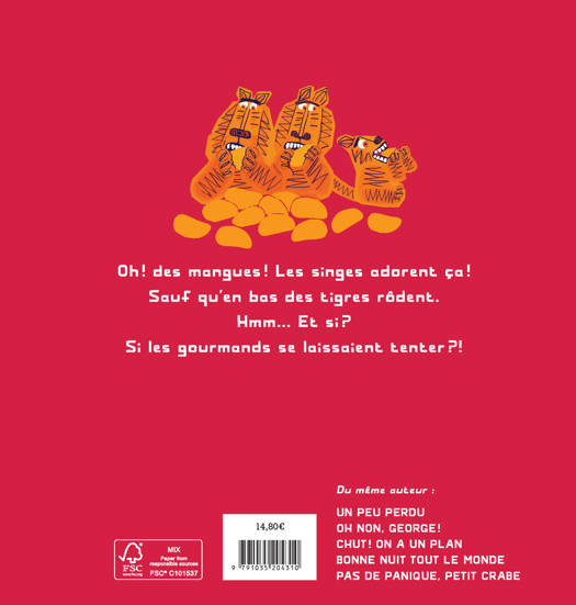 Oh! des mangues! Les singes adorent ça! Sauf qu'en bas des tigres rôdent. Hmm... Et si? Si les gourmands se laissaient tenter?