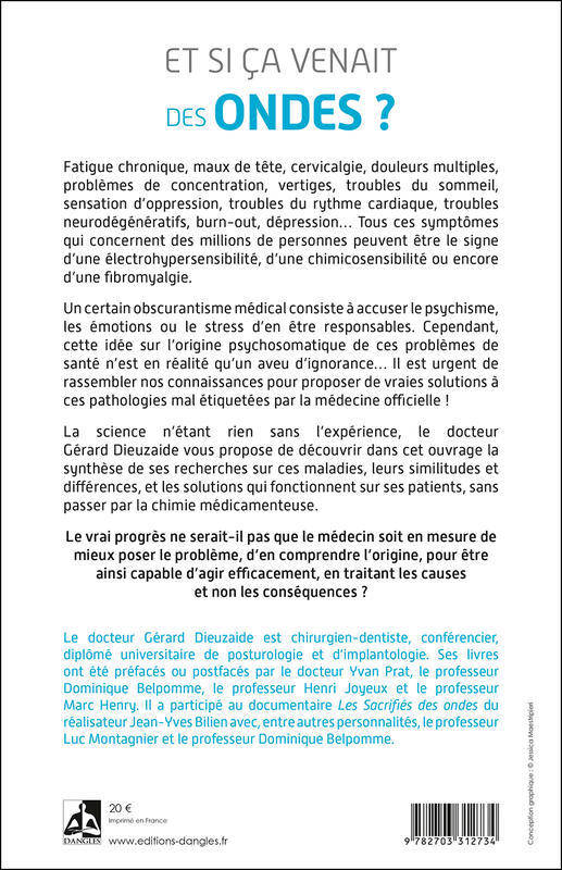 Fatigue chronique, maux de tête, cervicalgie, douleurs multiples, problèmes de concentration, vertiges, troubles du sommeil, sensation d’oppression, troubles du rythme cardiaque, troubles neurodégénératifs, burn-out, dépression… Tous ces symptômes qui concernent des millions de personnes peuvent être le signe d’une électrohypersensibilité, d’une chimicosensibilité ou encore d’une fibromyalgie. Un certain obscurantisme médical consiste à accuser le psychisme, les émotions ou le stress d’en être responsables. Cependant, cette idée sur l’origine psychosomatique de ces problèmes de santé n’est en réalité qu’un aveu d’ignorance… Il est urgent de rassembler nos connaissances pour proposer de vraies solutions à ces pathologies mal étiquetées par la médecine officielle ! La science n’étant rien sans l’expérience, le docteur Gérard Dieuzaide vous propose de découvrir dans cet ouvrage la synthèse de ses recherches sur ces maladies, leurs similitudes et différences, et les solutions qui fonctionnent sur ses patients, sans passer par la chimie médicamenteuse. Le vrai progrès ne serait-il pas que le médecin soit en mesure de mieux poser le problème, d’en comprendre l’origine, pour être ainsi capable d’agir efficacement, en traitant les causes et non les conséquences ?