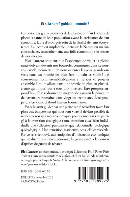 En nous laissant guider par une pleine santé qui donne toute leur place aux écosystèmes qui nous font vivre, on peut trouver le moyen de réorienter nos systèmes économiques pour donner un sens partagé à la transition écologique : une transition aussi bien individuelle que collective, personnelle que relationnelle, biologique comme écologique. Une transition instinctive, sensuelle et viscérale. Dans ce sens retrouvé, aux antipodes d'indicateurs économiques qui ne disent plus rien à personne, la pleine santé a le pouvoir d'apaiser, de guérir, de réparer."