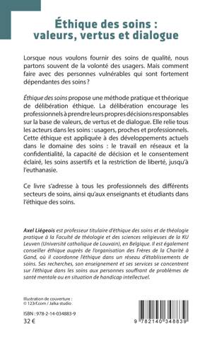Lorsque nous voulons fournir des soins de qualité, nous partons souvent de la volonté des usagers. Mais comment faire avec des personnes vulnérables qui sont fortement dépendantes des soins ? Éthique des soins propose une méthode pratique et théorique de délibération éthique. La délibération encourage les professionnels à prendre leurs propres décisions responsables sur la base de valeurs, de vertus et de dialogue. Elle relie tous les acteurs dans les soins : usagers, proches et professionnels. Cette éthique est appliquée à des développements actuels dans le domaine des soins : le travail en réseaux et la confidentialité, la capacité de décision et le consentement éclairé, les soins assertifs et la restriction de liberté, jusqu'à l'euthanasie. Ce livre s'adresse à tous les professionnels des différents secteurs de soins, ainsi qu'aux enseignants et étudiants dans l'éthique des soins.