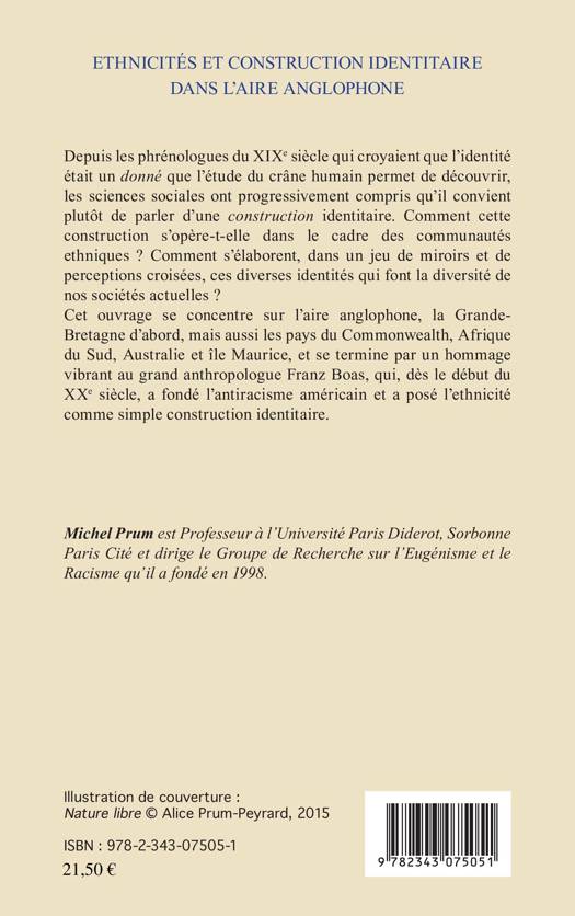 Comment la construction identitaire s'opère-t-elle dans le cadre des communautés ethniques ? Comment s'élaborent dans un jeu de miroirs et de perceptions croisées ces nombreuses identités qui font la diversité de nos sociétés actuelles ? Cet ouvrage se concentre sur l'aire anglophone, la Grande-Bretagne d'abord mais aussi les pays du Commonwealth, et se termine par un hommage vibrant à l'anthropologue Franz Boas qui a fondé l'antiracisme américain et a posé l'ethnicité comme simple construction identitaire.