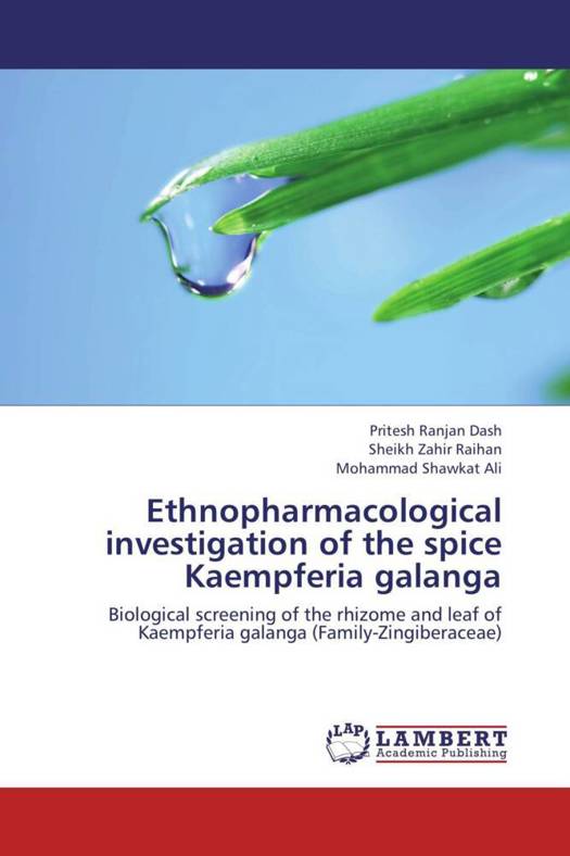 In this ethnopharmacological study, the acetone extract of rhizome (ACR), as well as petroether fraction (PEF), chloroform fraction (CHF), methanol fraction (MEF), and acetone extract of leaf (ACL) were subjected to pharmacological activity test. Phytochemical study revealed the presence of carbohydrates, tannins, flavonoids, proteins, steroids, alkaloids and resins in the crude extract of Kaempferia galanga. In Swiss albino mice, analgesic, neuropharmacological and antidiarrhoeal activity were investigated. The extracts were also evaluated for cytototoxicity and antibacterial activity.