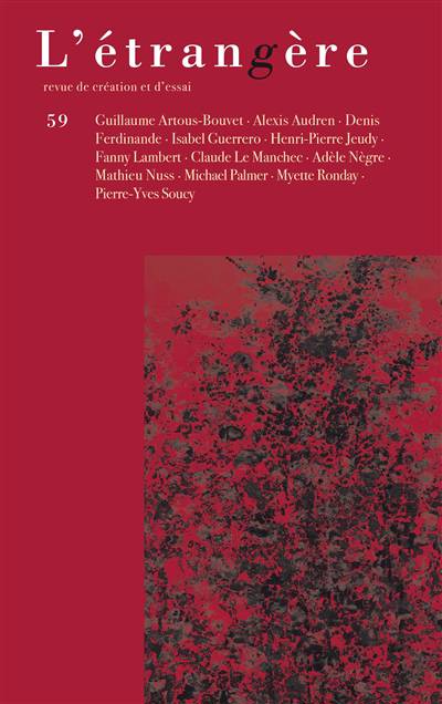 Nous retrouvons dans ce numéro de L'étrangère des suite poétiques, celle Michael Palmer, poète américain contemporain dont l'importance fait l'objet d'une reconnaissance de plus en plus manifeste, lequel propose une suite chargée d'impressions centrées sur la lumière et ses ombres, déclinées sous ses multiples manifestations. Nous avons sollicité des textes de plusieurs jeunes auteurs(es) afin de rejoindre au plus près ce qui est vécu du monde tel qu'il s'offre de nos jours, pour dire à la fois son éclatement, afin de mieux faire entrer la poésie dans les débats auxquels nous ne pouvons pas nous dérober, laquelle transcende par l'articulation des différentes dimensions expressives sur lesquelles elle se fonde : de Mathieu Nuss à Adèle Nègre et Alexis Audren, de Myette Ronday à Denis Ferdinande et Guillaume Artous-Bouvet, ou encore ces poésies de Fanny Lambert et d'Isabel Guerrero. Cette dernière nous offre des textes qui sont ses toutes premières publications. Les héritages poétiques des uns et des autres, si différents soient-ils, marquent des convergences de sensibilités, une attention à l'époque et les figures sous lesquelles elle se décline. Une attention à l'inscription de la poésie, ou encore, en textes portés par une prose poétique, peut prendre la forme d'une pièce dramatique. C'est ce que nous propose ici Henri-Pierre Jeudy, confronté à la réalité rugueuse de la vie qui est aussi l'exigence de confronter la mort dont la parole ici donne lieu à un dialogue soutenu par cette volonté de vérité. Le volume de clôt avec un essai de Claude Le Manchec consacré au poète André du Bouchet, dans la perspective où celui-ci fut et est resté jusqu'à la fin de sa vie très proche et très sensible autant qu'attentif aux œuvres d'Ossip Mandelstam comme de Varlam Chalamov, et de bien d'autres.