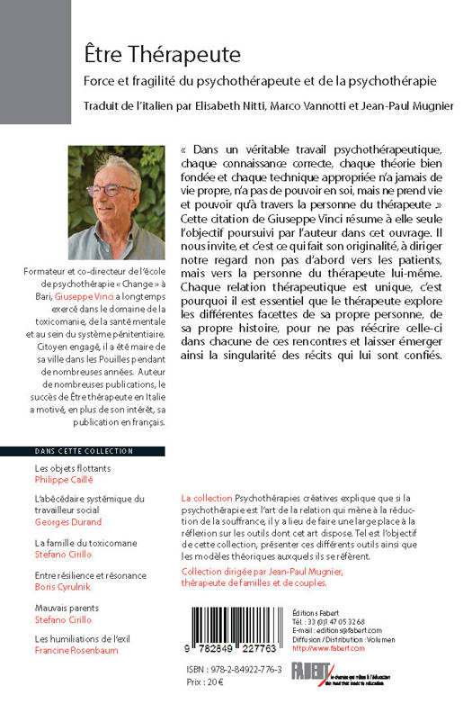 Être en thérapie n’a plus rien d’exceptionnel. Mais être thérapeute ? Rencontrer la souffrance de l’autre pour tenter de l’atténuer n’implique-t-il pas avant tout d’avoir fait un chemin personnel pour protéger ses patients de ses propres tourments et de ce qui leur a donné naissance. La série En thérapie a montré combien les difficultés, les tensions auxquelles le thérapeute est confronté dans sa vie personnelle peuvent interférer dans la prise en charge des patients. De même si la rencontre émotionnelle entre un patient et son thérapeute est un facteur de changement important, il est fondamental que les émotions du thérapeute ne deviennent pas uns source de préoccupation pour les patients eux-mêmes. Au-delà de ces réflexions, ce livre décrit dans des termes accessibles à tous la responsabilité éthique du thérapeute. Un livre que tous les thérapeutes devraient lire, mais aussi ceux qui leur font appel pour éclairer leur choix tant l’offre (de thérapie) est importante.