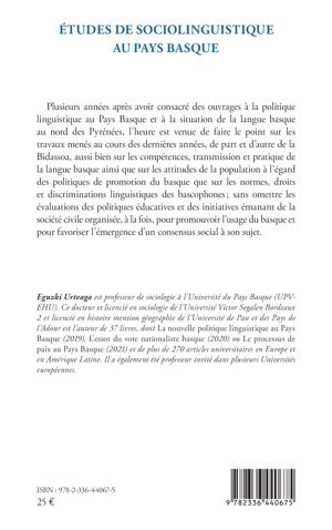 Plusieurs années après avoir consacré des ouvrages à la politique linguistique au Pays Basque et à la situation de la langue basque au nord des Pyrénées, l'heure est venue de faire le point sur les travaux menés au cours des dernières années, de part et d'autre de la Bidassoa, aussi bien sur les compétences, transmission et pratique de la langue basque ainsi que sur les attitudes de la population à l'égard des politiques de promotion du basque que sur les normes, droits et discriminations linguistiques des bascophones; sans omettre les évaluations des politiques éducatives et des initiatives émanant de la société civile organisée, à la fois, pour promouvoir l'usage du basque et pour favoriser l'émergence d'un consensus social à son sujet.