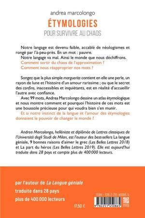 Notre langage est devenu faible, accable de neologismes et ronge par l'a-peu-pres. En un mot: pauvre.Notre langage va mal. Ainsi le monde que nous dechiffrons.Comment sortir du chaos de l'approximation ?Comment nous reapproprier nos mots ?Songez que la plus simple marguerite contient en elle une perle, un rayon de lune et l'histoire d'un amour rarissime; ou que le secret des confins, inaccessibles et inquietants, est en realite d'accueillir l'autre avec confiance.Avec 99 mots, Andrea Marcolongo dessine un atlas etymologique et nous montre comment et pourquoi l'histoire de ces mots est une boussole precieuse pour qui voudra bien s'en munir.Et si notre instinct de la langue et l'amour des etymologies donnaient le pouvoir de changer le monde ?