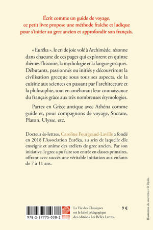 « Eurêka », le cri de joie volé à Archimède, résonne dans chacune de ces pages qui explorent en quinze thèmes l’histoire, la mythologie et la langue grecques. Débutants, passionnés ou initiés y découvriront la civilisation grecque sous tous ses aspects, de la cuisine aux sciences en passant par l’architecture et la philosophie, tout en améliorant leur connaissance du français grâce aux très nombreuses étymologies.