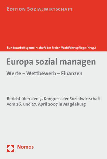 Zusammen mit europäischen Partnern können soziale Dienste und Einrichtungen in Deutschland ihre Arbeit optimieren. Die deutsche Sozialwirtschaft kann, wenn sie sich auf internationale Kooperationen einlässt, mit einer europäischen Dividende rechnen. Das war die Botschaft des 5. Kongresses der Sozialwirtschaft, der am 26. und 27. April 2007 in Magdeburg stattfand, zum Thema "Europa sozial managen - Werte, Wettbewerb, Finanzen". Veranstalter dieses alle zwei Jahre stattfindenden Branchentreffs sind die Bundesarbeitsgemeinschaft der Freien Wohlfahrtspflege, die Bank für Sozialwirtschaft und die Nomos Verlagsgesellschaft. In zwei Plenumsveranstaltungen und sechs Foren diskutierten Führungskräfte mit Referenten aus ganz Europa die konkreten Auswirkungen der europäischen Einigung auf die Sozialwirtschaft - von den Folgen des europäischen Vergaberechts auf deutsche Leistungserbringer bis zu den Auswirkungen der Dienstleistungsrichtlinie für Import und Export sozialer Dienstleistungen. Dieser Sammelband dokumentiert Ansprachen, Vorträge, Referate und Präsentationen der Veranstaltung. Die Sozialwirtschaft ist eine der größten Wirtschaftszweige der Bundesrepublik. Allein in den Betrieben der anerkannten Wohlfahrtsverbände arbeiten hauptberuflich rund 1,5 Mio. Menschen, das sind knapp 4 % aller Erwerbstätigen in Deutschland. Zusätzlich engagieren sich noch 2,5-3 Mio. Bürgerinnen und Bürger ehrenamtlich als Hospizhelfer, gesetzliche Betreuer oder als persönlich haftende Vereinsvorstände.
