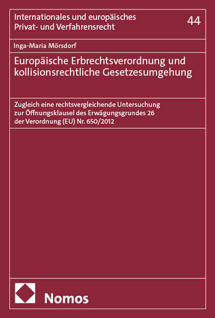 Die Europäische Erbrechtsverordnung schafft einheitliche Regelungen zum anwendbaren Recht in grenzüberschreitenden Nachlassfällen. Sowohl im Bereich der objektiven Anknüpfung (letzter gewöhnlicher Aufenthalt) wie auch der Rechtswahl (Heimatrecht) kann der Erblasser Einfluss nehmen und das Erbrecht zur Anwendung bringen, das ihm am günstigsten erscheint. Dies kann Anlass zur Prüfung einer Gesetzesumgehung bieten, der viele Rechtsordnungen mit eigenständigen nationalen Mechanismen begegnen. Hieran knüpft Erwägungsgrund 26 der Verordnung an, der einen Rückgriff auf entsprechende Mechanismen zulässt. Die Analyse der Bedeutung und Reichweite dieses bisher wenig beachteten Erwägungsgrundes für die Rechtspraxis stehen im Mittelpunkt der Arbeit.