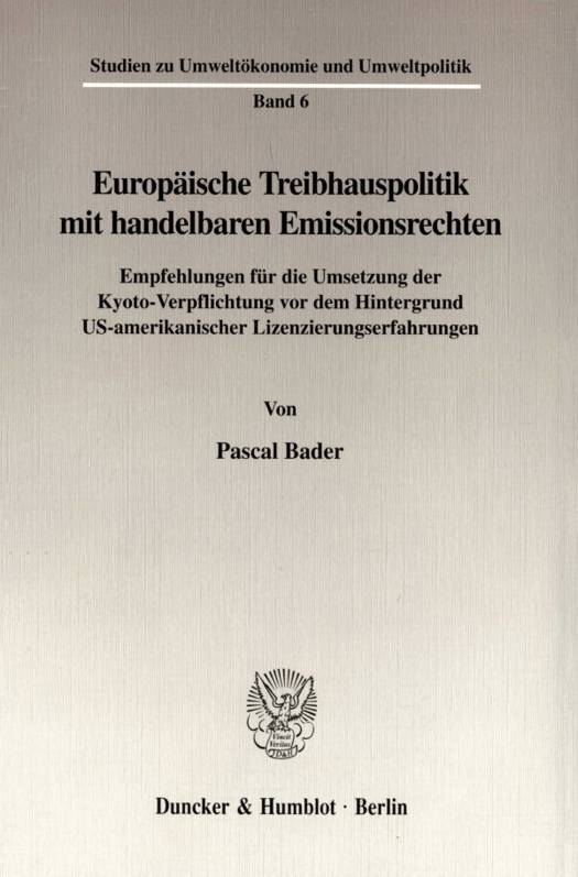 Ziel des Autors ist es, Vorschläge für die Implementierung einer Lizenzlösung für Treibhausgase in der Europäischen Union zu erarbeiten. Grundlage der Untersuchung bilden Erfahrungen mit US-amerikanischen Lizenzsystemen. Dabei handelt es sich zum einen um das nationale SO2 Allowance Trading Program für Elektrizitätskraftwerke und das regional begrenzte RECLAIM-Lizenzprogramm in Los Angeles.