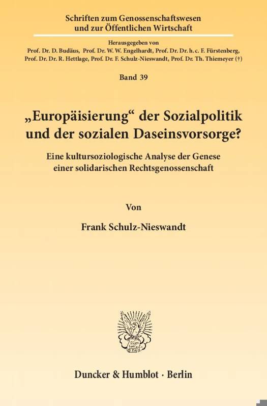 Frank Schulz-Nieswandt behandelt den Stand der Forschung zum Thema "Europäisierung" der Sozialpolitik und der sozialen Daseinsvorsorge. Damit ist der Objektbereich breit gespannt: Behandelt werden das koordinierende Sozial- und Arbeitsrecht, die offene Methode der Koordinierung, die Dienstleistungen von allgemeinem Interesse, die Vergrundrechtlichung, die Strukturfondspolitik, der soziale Dialog, die Gender Mainstreaming-Politik etc. Interdisziplinär orientiert, ordnet die Darstellung diese Objektbereiche in die politik- und rechtswissenschaftliche Mehr-Ebenen-Analyse ein und entfaltet die These der gemeinsam-geteilten Kompetenz in der Sozialpolitik. Dabei wird der widerspruchsvolle, inkohärente, ungleichzeitige Prozess der europäischen Integration auch methodologisch perspektivenvielfältig analysiert: (Struktur-)funktionalistische Sichtweisen werden vermittelt zur sozialkonstruktiven Sicht symbolisch-interaktionistischer Kulturtheorie. Der imperative Funktionalismus der Binnenmarktlogik wird dergestalt in Beziehung gesetzt zur kulturgrammatischen Logik symbolischer Sozial- und Systemintegration, was auch die Bildung einer europäischen Öffentlichkeit als demokratietheoretische Dimension umfasst. Das Projekt Europa wird als Idee einer Rechtsgenossenschaft skizziert. Vor diesem Hintergrund wird auch die neuere Renaissance des Denkens von Hans Kelsen verständlich.