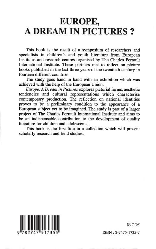 This book is the result of a symposium of researchers and specialists in children's and youth literature from European Institues and research centres organised by The Charles Perrault International Institute. These partners met to reflect on picture books published in the last three years of the twentieth century in fourteen different countries.