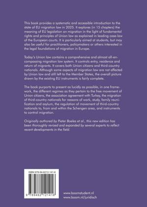 This book provides a systematic and accessible introduction to the state of EU migration law in 2025. It explores (in 15 chapters) the meaning of EU legislation on migration in the light of fundamental rights and principles of Union law as explained in leading case-law of the European courts. It is particularly aimed at students, but may also be useful for practitioners, policymakers or others interested in the legal foundations of migration in Europe. Today’s Union law contains a comprehensive and almost all-encompassing migration law system. It controls entry, residence and return of migrants. It covers both Union citizens and third-country nationals. Although some aspects of migration law are not affected by Union law and still left to the Member States, the overall picture drawn by the existing EU instruments is fairly complete. The book purports to present as lucidly as possible, in one framework, the different regimes as they pertain to the free movement of Union citizens, the association agreement with Turkey, the migration of third-country nationals for reasons of work, study, family reunification and asylum, the regulation of movement of third-country nationals to, from and within the Schengen area, and instruments to control migration. Originally authored by Pieter Boeles et al., this new edition has been thoroughly revised and expanded by several experts to reflect recent developments in the field.