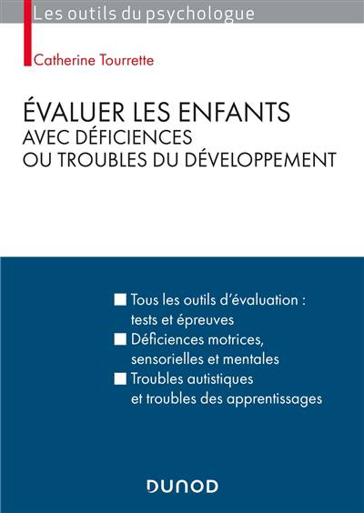 Y sont présentées aussi : - des épreuves spécifiques de dépistage ou d’évaluation pour les troubles autistiques ou les troubles des apprentissages ; - la description des principaux troubles du développement avec des suggestions sur les outils qui peuvent être choisis compte tenu des contraintes et des objectifs de l’évaluation de l’enfant. Des cas cliniques et une réflexion sur les objectifs et modalités de l’évaluation, en particulier lorsque les enfants présentent des troubles, sont proposés.
