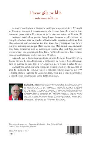 Ce texte s’inscrit dans la démarche initiée par un premier livre, L’Évangile de Jérusalem, consacré à la redécouverte du premier évangile araméen dont les spécialistes pressentaient l’existence et qu’ils situaient autour de l’année 40. L’auteur soulève les nombreuses questions qui découlent de cette découverte et propose quelques analyses linguistique des textes.