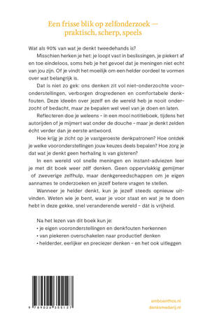 In een wereld vol snelle meningen en instant-adviezen leer je met dit boek weer zélf denken. Geen oppervlakkig gemijmer of zweverige zelfhulp, maar denkgereedschappen om je eigen aannames te onderzoeken en jezelf betere vragen te stellen. Wanneer je helder denkt, kun je jezelf steeds opnieuw uitvinden. Weten wie je bent, waar je voor staat en wat je te doen hebt in deze gekke, snel veranderende wereld - dát is vrijheid.