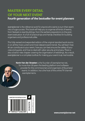 This fully revised and expanded edition of the original standard work zooms in on all the most current and most relevant event trends. You will learn how AI can contribute to your event, how you can best ensure the safety of your crew and guests, and how to deal with cyber security and privacy. There is also a brand-new chapter covering the organisation of weddings. As a result,