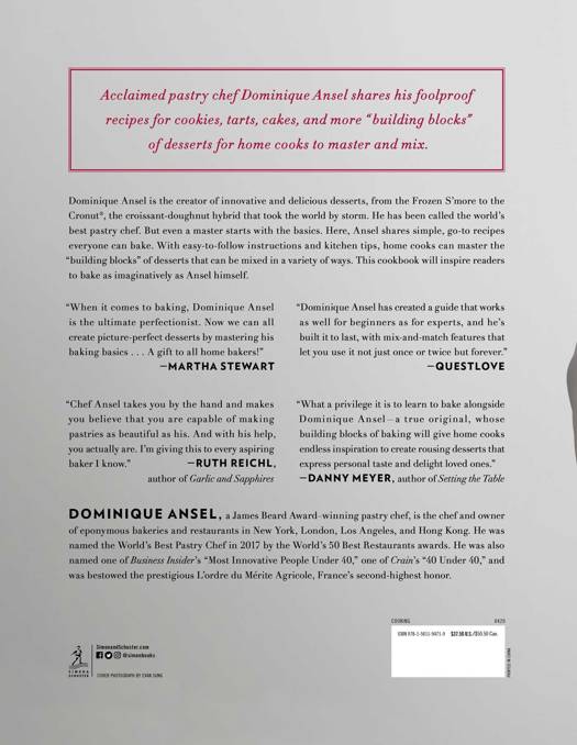 Named one of the best cookbooks of the season by The New York Times, Chowhound, Eater, Food & Wine, Forbes, and more. Acclaimed pastry chef Dominique Ansel shares his simple, foolproof recipes for tarts, cakes, jams, buttercreams, and more "building blocks" of desserts for home cooks to master and mix as they please. Dominique Ansel is the creator of beautiful, innovative, and delicious desserts, from the Frozen S'More to the Cronut(R), the croissant-doughnut hybrid that took the world by storm. He has been called the world's best pastry chef. But this wasn't always the case.