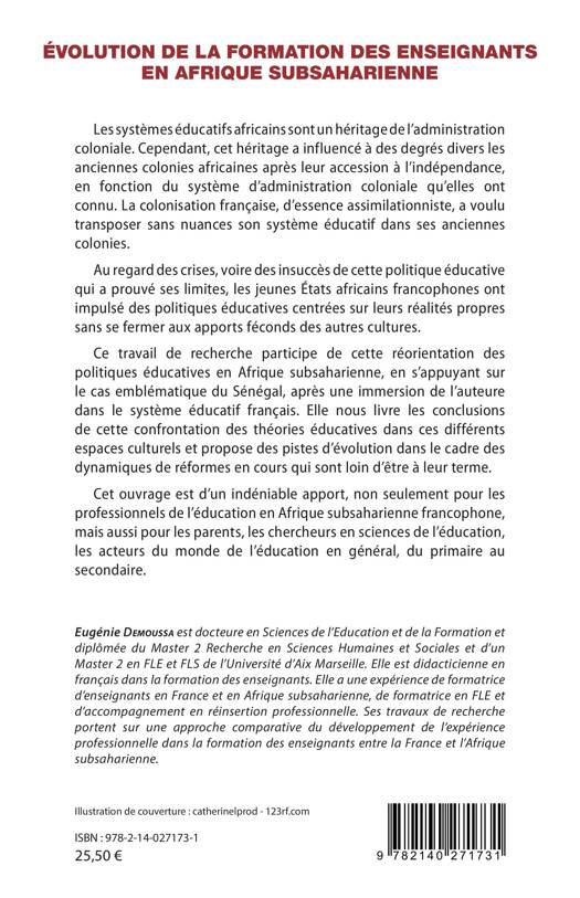 Les systèmes éducatifs africains sont un héritage de l'administration coloniale. Cependant, cet héritage a influencé à des degrés divers les anciennes colonies africaines après leur accession à l'indépendance, en fonction du système d'administration coloniale qu'elles ont connu. Au regard des crises, les jeunes États africains francophones ont impulsé des politiques éducatives centrées sur leurs réalités propres sans se fermer aux apports féconds des autres cultures. Ce travail de recherche participe de cette réorientation des politiques éducatives en Afrique subsaharienne, en s'appuyant sur le cas emblématique du Sénégal, après une immersion de l'auteure dans le système éducatif français. Elle nous livre les conclusions de cette confrontation des théories éducatives dans ces différents espaces culturels et propose des pistes d'évolution dans le cadre des dynamiques de réformes en cours qui sont loin d'être à leur terme.