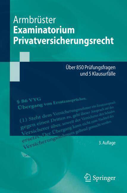 Das Examinatorium umfasst über 850 Fragen und Antworten sowie fünf Klausurfälle mit Lösungshinweisen zum Privatversicherungsrecht. Der inhaltliche Schwerpunkt liegt auf dem Versicherungsvertragsrecht des VVG; einbezogen werden aber auch das Gleichbehandlungsrecht (AGG), das Versicherungsaufsichtsrecht, das Versicherungsunternehmensrecht sowie Fragen des internationalen Rechts (Kollisionsrecht, europäisches Versicherungsvertragsrecht). Das Werk ermöglicht insbesondere Studierenden, aber auch allen mit der Materie in der Praxis befassten Juristen, ihren Wissensstand zu überprüfen sowie zu erweitern.