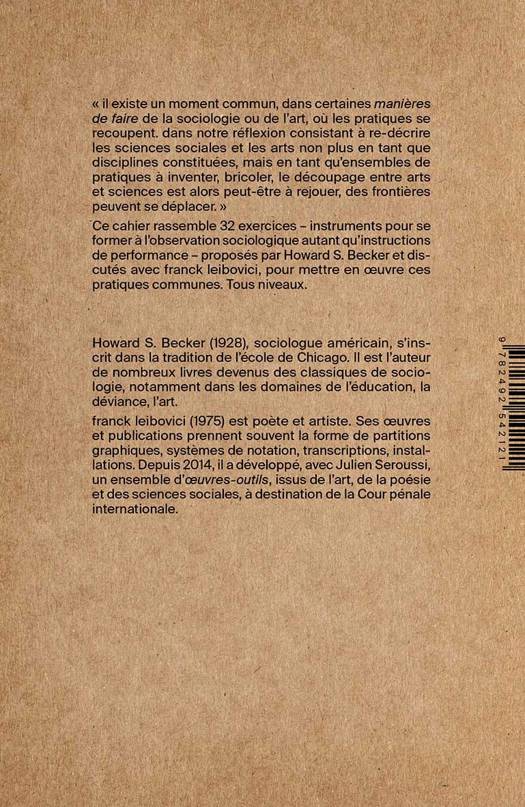 « il existe un moment commun, dans certaines manières de faire de la sociologie ou de l’art, où les pratiques se recoupent. dans notre réflexion consistant à re-décrire les sciences sociales et les arts non plus en tant que disciplines constituées, mais en tant qu’ensembles de pratiques à inventer, bricoler, le découpage entre arts et sciences est alors peut-être à rejouer, des frontières peuvent se déplacer. »