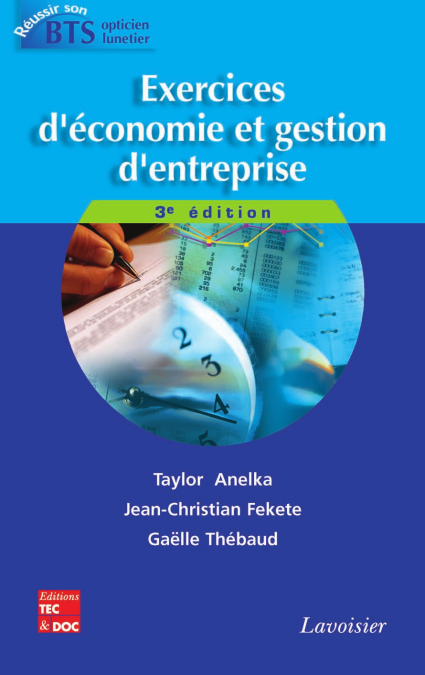 Dotée d'un coefficient 5, l'épreuve d'économie et de gestion d'entreprise compte parmi les épreuves majeures du BTS opticien-lunetier. Elle recèle plus d'un piège et la meilleure façon de s'y préparer est encore de maîtriser les principaux types d'exercices qui vous seront proposés le jour de l'examen. Pour vous y aider, cette troisième édition d'Exercices d'économie et gestion d'entreprise vous propose : 93 exercices corrigés qui regroupent les questions les plus récurrentes sur toutes les parties du programme : statuts de l'entreprise, système d'information, comptabilité, gestion de l'emploi, droit social, droit civil, droit commercial et marketing , des indications de méthodes, des conseils et des astuces qui vous informent sur ce que les examinateurs attendent et vous permettent d'aborder l'épreuve avec plus de sérénité , les annales de 2000 à 2010 que vous pouvez travailler soit dans les conditions de l'examen, soit en vous inspirant des pistes de réflexion préliminaires proposées par les auteurs. Les exercices comme les annales corrigées sont complétés par des rappels de cours et des exemples issus de l'actualité de la profession grâce auxquels vous pourrez acquérir les bases de culture économique nécessaires à votre réussite.