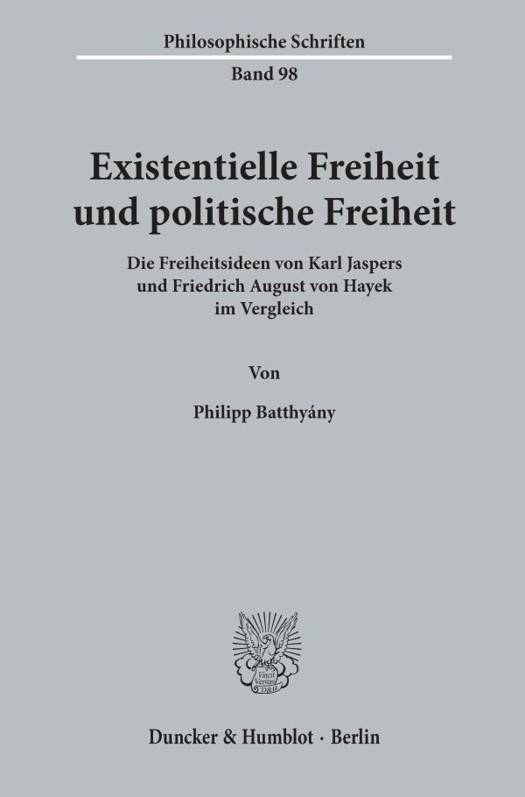 Intention dieses Buches ist ein zusammenfuhrender Vergleich der Freiheitsbegriffe der Existenzphilosophie und des Liberalismus. Hierzu werden die Werke zweier der profiliertesten Denker der jeweiligen Freiheitsauffassung im 20. Jahrhundert, Karl Jaspers und Friedrich August von Hayek, ausfuhrlich dargelegt und ihre Freiheitsideen von deren Grundlagen her sowohl eigenstandig als auch aneinander entwickelt. Im politischen Schlussteil wird die Moglichkeit einer Freiheitskonzeption aufgezeigt, die beide Ansatze verbindet. Wenngleich bei Jaspers durch einen expliziten Bezug auf Hayek in einem seiner Bucher selbst schon angelegt, ist ein solcher Vergleich in der Literatur bislang nicht vorgenommen worden. In vielerlei Hinsicht ideengeschichtlich und systematisch wird mit dieser Arbeit folglich Neuland betreten und eroffnen sich in Forschung und Lehre neue philosophische Diskurse und Deutungsweisen beider Werke.