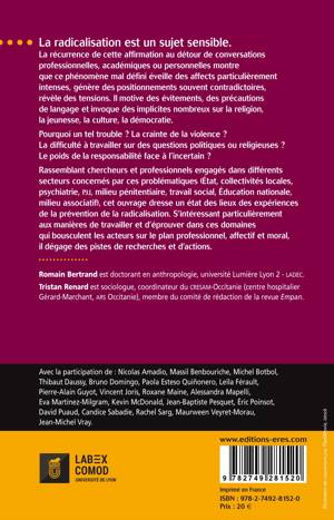 Rassemblant chercheurs et professionnels engagés dans différents secteurs concernés par ces problématiques (État, collectivités locales, psychiatrie, PJJ, milieu pénitentiaire, travail social, Éducation nationale, milieu associatif), cet ouvrage dresse un état des lieux des expériences de la prévention de la radicalisation. S'intéressant particulièrement aux manières de travailler et d'éprouver dans ces domaines qui bousculent les acteurs sur le plan professionnel, affectif et moral, il dégage des pistes de recherches et d'actions.
