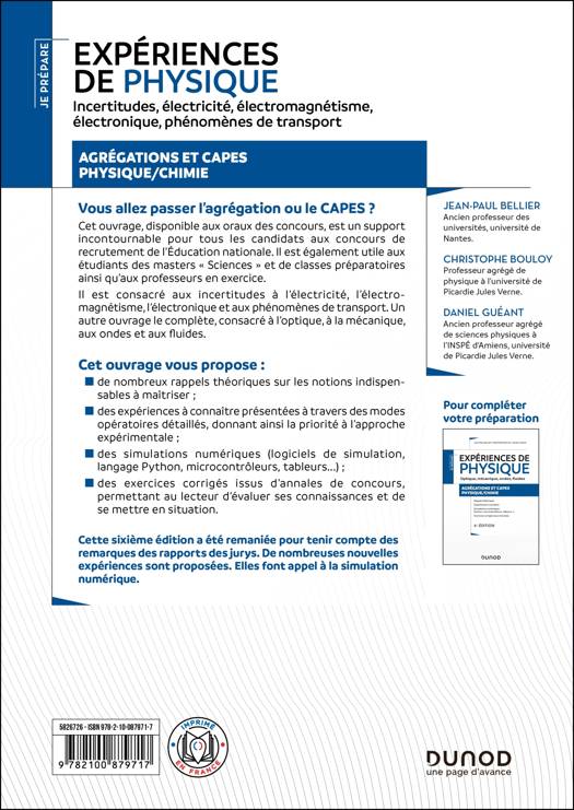 Il est consacré aux incertitudes à l’électricité, l’électromagnétisme, l’électronique et aux phénomènes de transport. Un autre ouvrage le complète, consacré à l’optique, à la mécanique, aux ondes et aux fluides.