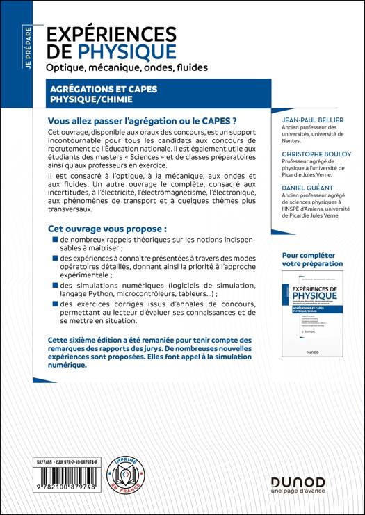Cette sixième édition a été remaniée pour tenir compte des remarques des rapports des jurys. De nombreuses nouvelles expériences sont proposées. Elles font appel à la simulation numérique.