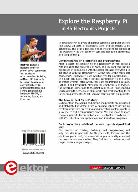 Combine hands-on electronics and programming After a short introduction to the Raspberry Pi you proceed with installing the required software. The SD card that can be purchased in conjunction with this book contains everything to get started with the Raspberry Pi. At the side of the (optional) Windows PC, software is used which is free for downloading. The book continues with a concise introduction to the Linux operating system, after which you start programming in Bash, Python 3 and Javascript. Although the emphasis is on Python, the coverage is brief and to the point in all cases - just enabling you to grasp the essence of all projects and start adapting them to your requirements. All set, you can carry on with fun projects.