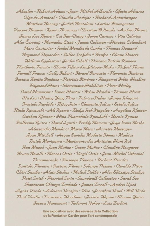 En octobre 2025, la Fondation Cartier inaugure son nouveau site 2 place du Palais-Royal à Paris, dont l'architecture intérieure est signée par Jean Nouvel, avec une grande exposition dédiée à sa Collection. Intitulée «Exposition Générale», en référence à l'histoire de ce bâtiment qui abrita successivement le Grand Hôtel du Louvre construit pour accueillir les visiteurs de l'Exposition Universelle de 1855, les Grands Magasins du Louvre puis le Louvre des Antiquaires, cette exposition réunit près de 800 oeuvres de plus de 100 artistes. À travers une scénographie conçue par le studio de design Formafantasma,« Exposition Générale» présente l'identité unique de la Fondation Cartier et invite à découvrir cette Collection hors du commun explorant les multiples formes de la création contemporaine. Véritable prolongement de l'exposition, le catalogue permet de se plonger dans cette présentation historique de la Collection de la Fondation Cartier. Richement illustré et documenté, il constitue un ouvrage de référence sur les oeuvres de l'exposition, tout en mettant en évidence les liens profonds et continus qui existent entre la Fondation Cartier et les artistes depuis plus de quarante ans.