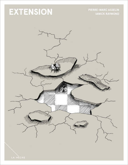 Par un très fin entrelacement des textes mi-tendres mi-moqueurs de Pierre-Marc Asselin et des minutieux dessins de Ianick Raymond, Extension présente une allégorie rafraîchissante sur la résilience et la beauté du lien qui unit le vivant.
