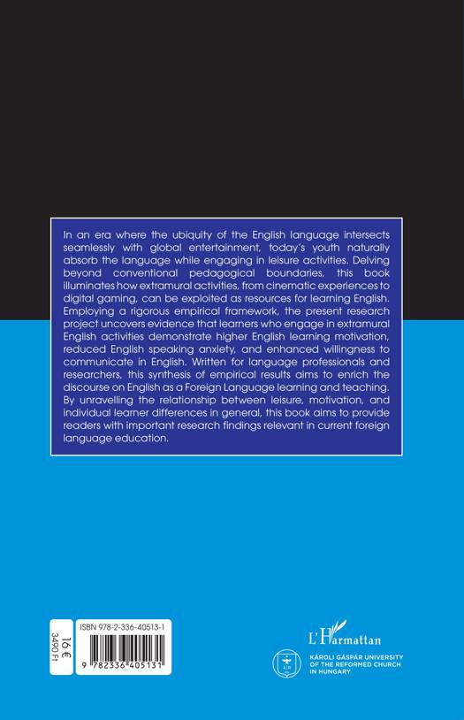 In an era where the ubiquity of the English language intersects seamlessly with global entertainment, today's youth naturally absorb the language while engaging in leisure activities. Delving beyond conventional pedagogical boundaries, this book illuminates how extramural activities, from cinematic experiences to digital gaming, can be exploited as resources for learning English. Employing a rigorous empirical framework, the present research project uncovers evidence that learners who engage in extramural English activities demonstrate higher English learning motivation, reduced English speaking anxiety, and enhanced willingness to communicate in English. Written for language professionals and researchers, this synthesis of empirical results aims to enrich the discourse on English as a Foreign Language learning and teaching. By unravelling the relationship between leisure, motivation, and individual learner differences in general, this book aims to provide readers with important research findings relevant in current foreign language education.
