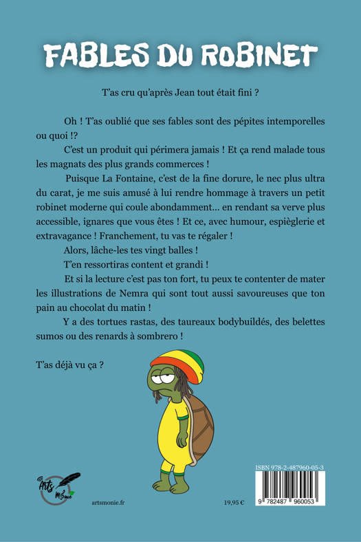 Les Fables du Robinet revisitent l’art de la fable à la manière d’un grand détournement jubilatoire. Antoine Casanova signe ici un recueil de textes poétiques mordants, nourris d’humour, de philosophie douce et de critique sociale. Chaque fable emprunte les codes de La Fontaine… pour mieux les bousculer. Les illustrations pleines de malice de Sophiane Nemra donnent vie à un bestiaire contemporain extravagant, rock’n’roll même : une cigale hippie, un lion guerrier futuriste, une belette sumo… Un album pour rire, réfléchir et se retrouver autour de nos petites contradictions humaines.