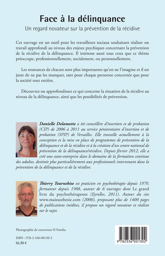 Voici un outil pour les travailleurs sociaux souhaitant réaliser un travail approfondi au niveau des enjeux psychiques concernant la prévention de la récidive de la délinquance. Il intéresse aussi tous ceux que ce thème préoccupe, professionnellement, socialement, ou personnellement. Découvrez ou approfondissez ce qui concerne la situation de la récidive au niveau de la délinquance, ainsi que les possibilités de prévention.