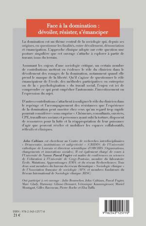 La domination est un thème central de la sociologie qui en questionne ses finalités, entre dévoilement, dénonciation et émancipation. Cet ouvrage s'attache à explorer, à partir de travaux issus du terrain, la posture singulière adoptée de l'approche clinique. L'enjeu est ici de comprendre ce qui peut empêcher l'autonomie, l'investissement ou l'expression du sujet. Chacun dispose en soi de ressources pour lutter contre la domination et se réapproprier sa propre puissance d'agir.