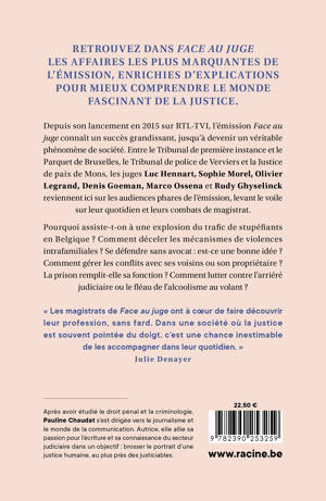 Retrouvez dans Face au juge les affaires les plus marquantes de l'émission, enrichies d'explications pour mieux comprendre le monde fascinant de la justice. Depuis son lancement en 2015 sur RTL-TVI, l'émission Face au juge connaît un succès grandissant, jusqu'à devenir un véritable phénomène de société. Entre le Tribunal de première instance et le Parquet de Bruxelles, le Tribunal de police de Verviers et la Justice de paix de Mons, les juges Luc Hennart, Sophie Morel, Olivier Legrand, Denis Goeman, Marco Ossena et Rudy Ghyselinck reviennent ici sur les audiences phares de l'émission, levant ainsi le voile sur leur quotidien et leurs combats de magistrat. Pourquoi assiste-t-on à une explosion du trafic de stupéfiants en Belgique ? Comment déceler les mécanismes de violences intrafamiliales ? Se défendre sans avocat : est-ce une bonne idée ? Comment gérer les conflits avec ses voisins ou son propriétaire ? La prison remplit-elle sa fonction ? Comment lutter contre l'arriéré judiciaire ou le fléau de l'alcoolisme au volant ?