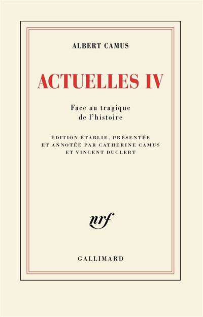 Le 3 janvier 1960, quittant le Luberon, pour ne plus y revenir - il allait trouver la mort sur la route de Paris -, Albert Camus laissait à Lourmarin le plan d'un recueil d'écrits politiques et intellectuels. Un « Actuelles IV » qui devait succéder aux trois premiers déjà publiés. Et qui ne vit jamais le jour.
