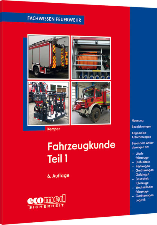 Fahrzeugkunde Teil 1 - Einteilung, Normung, Kennzeichnung, AnforderungenDieser Fachwissen-Feuerwehr-Band vermittelt Ihnen fundiertes Wissen über die aktuelle Feuerwehrfahrzeugtechnik: Sie erhalten einen systematischen Überblick über Normung, Einteilung und Kennzeichnung von Feuerwehrfahrzeugen sowie über die allgemeinen und besonderen Anforderungen an verschiedene Fahrzeugtypen. Das Buch erläutert den Aufbau und Inhalt der relevanten Fahrzeugnormen, stellt die grundlegende Einteilung der Feuerwehrfahrzeuge dar und erklärt die unterschiedlichen Bezeichnungssysteme. Die vorliegende 6. Auflage bringt alle Themen auf den neuesten Stand. Mit farbig hervorgehobenen Merksätzen, anschaulichen Abbildungen und Selbsttestfragen (inklusive Lösungen), die das erworbene Wissen festigen!
