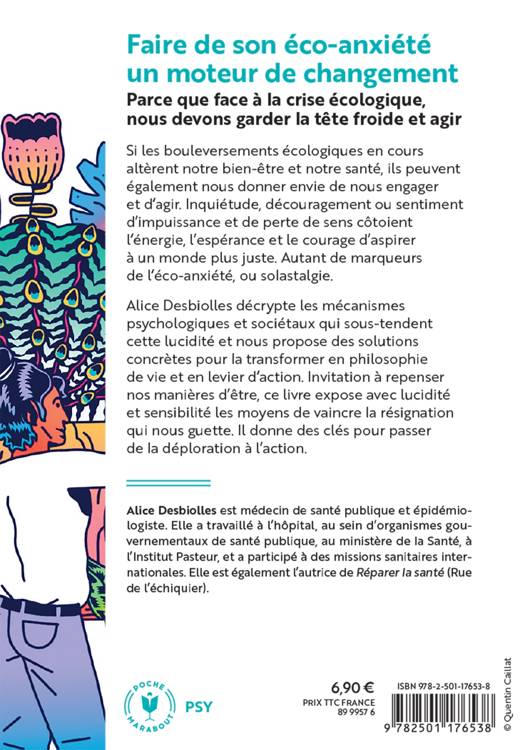Si les bouleversements écologiques en cours altèrent notre bien-être et notre santé, ils peuvent également nous donner envie de nous engager et d’agir. Inquiétude, découragement ou sentiment d’impuissance et de perte de sens côtoient l’énergie, l’espérance et le courage d’aspirer à un monde plus juste. Autant de marqueurs de l’éco-anxiété, ou solastalgie. Alice Desbiolles décrypte les mécanismes psychologiques et sociétaux qui sous-tendent cette lucidité et nous propose des solutions concrètes pour la transformer en philosophie de vie et en levier d’action. Invitation à repenser nos manières d’être, ce livre expose avec lucidité et sensibilité les moyens de vaincre la résignation qui nous guette. Il donne des clés pour passer de la déploration à l’action.