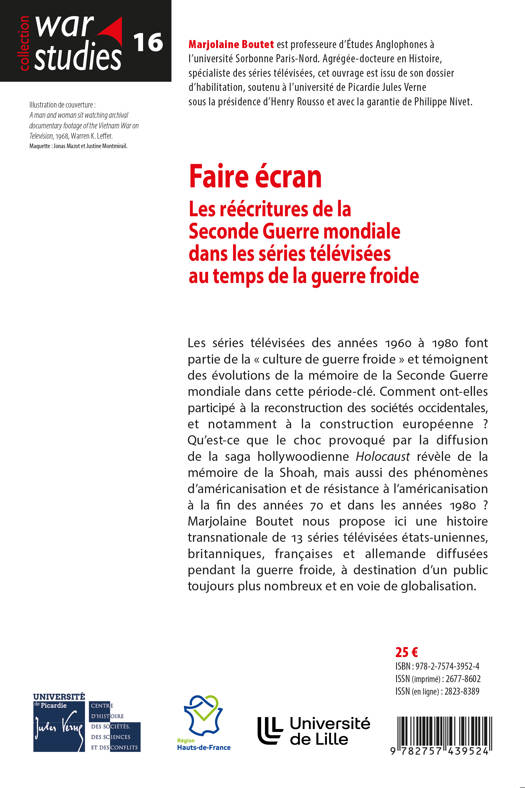 Les séries télévisées des années 1960 à 1980 font partie de la « culture de guerre froide » et témoignent des évolutions de la mémoire de la Seconde Guerre mondiale dans cette période-clé. Comment ont-elles participé à la reconstruction des sociétés occidentales, et notamment à la construction européenne ? Qu’est-ce que le choc provoqué par la diffusion de la saga hollywoodienne Holocaust révèle de la mémoire de la Shoah, mais aussi des phénomènes d’américanisation et de résistance à l’américanisation à la fin des années 70 et dans les années 1980 ? Marjolaine Boutet nous propose ici une histoire transnationale de 13 séries télévisées états-uniennes, britanniques, françaises et allemande diffusées pendant la guerre froide, à destination d’un public toujours plus nombreux et en voie de globalisation.